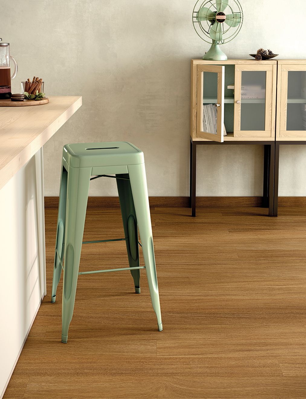 O pavimento flutuante laminado 03F Brazilean Afzelia inspira-se na Afizelia Brazil, uma madeira tropical de tom avermelhado natural amplamente valorizada em design de interiores. Neste padrão sem nós, a cor singular assume total protagonismo, conferindo caráter e distinção ao espaço.