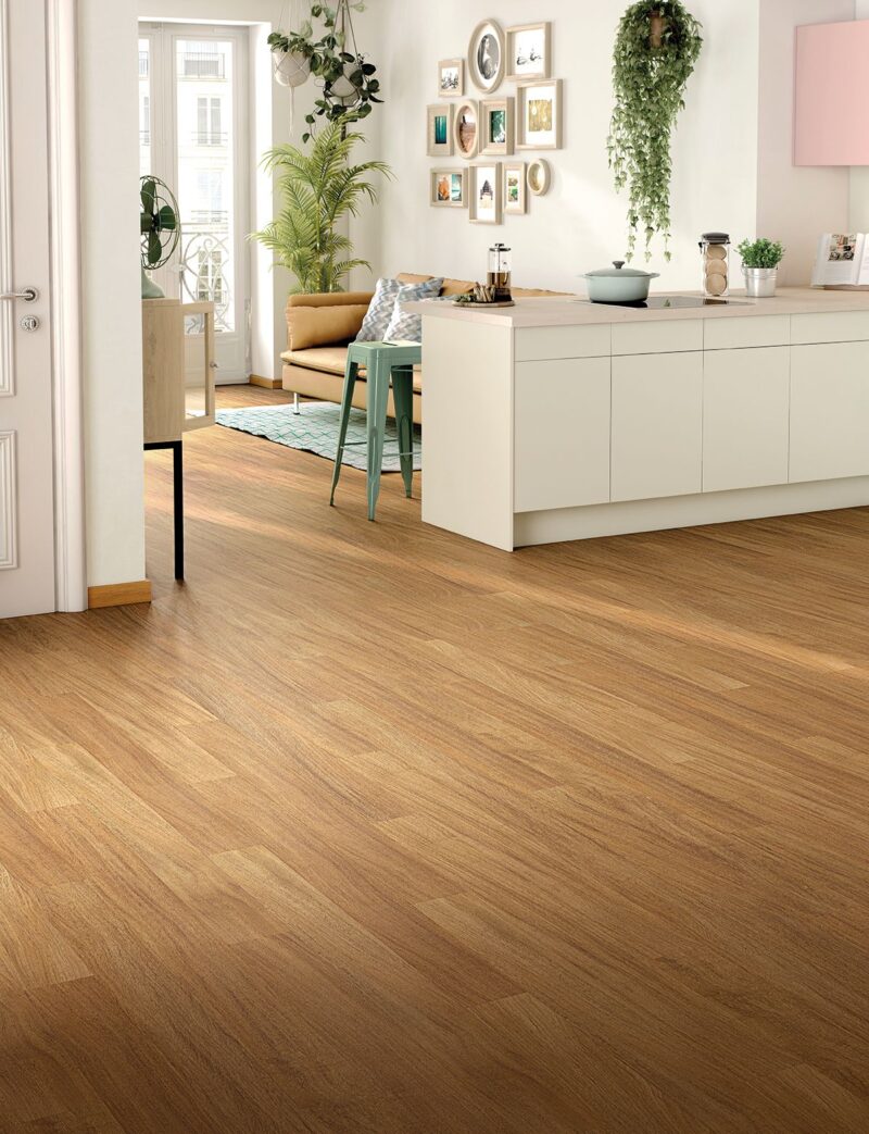 Finfloor é apto para instalação em casas de banho e cozinhas de ambiente doméstico. As coleções de Finfloor com tecnologia Durable estão preparadas para ambientes úmidos exigentes e sua instalação é muito simples, só requer o uso de silicone de enchimento para o espaço restante entre o pavimento e as paredes. Usando o selante de juntas e o silicone de enchimento também a coleção Original está totalmente apta para instalação neste tipo de espaços. Não é aplicável a instalações comerciais. Instruções de instalação em downloads.