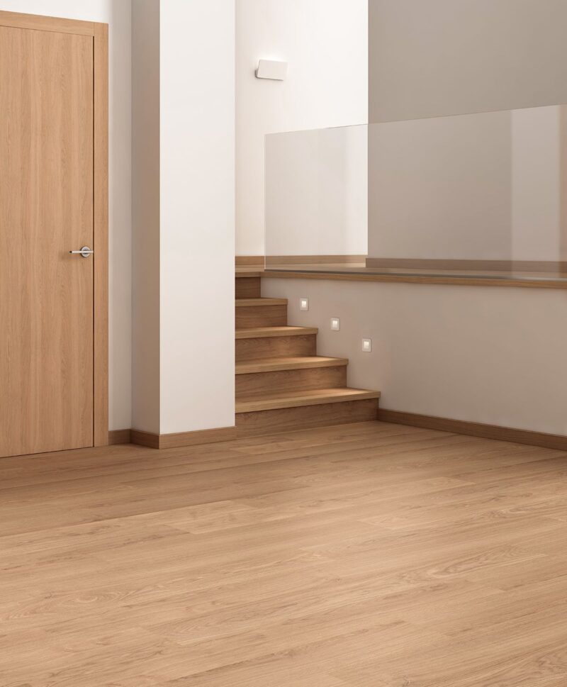 O pavimento flutuante laminado 25Y Quercus Oak evidencia a vocação intemporal do padrão de carvalho através de uma tonalidade subtil e de um detalhe minucioso com poros finos que reforçam a autenticidade visual da madeira. A textura mate intensifica a naturalidade do design e acentua a profundidade da superfície.