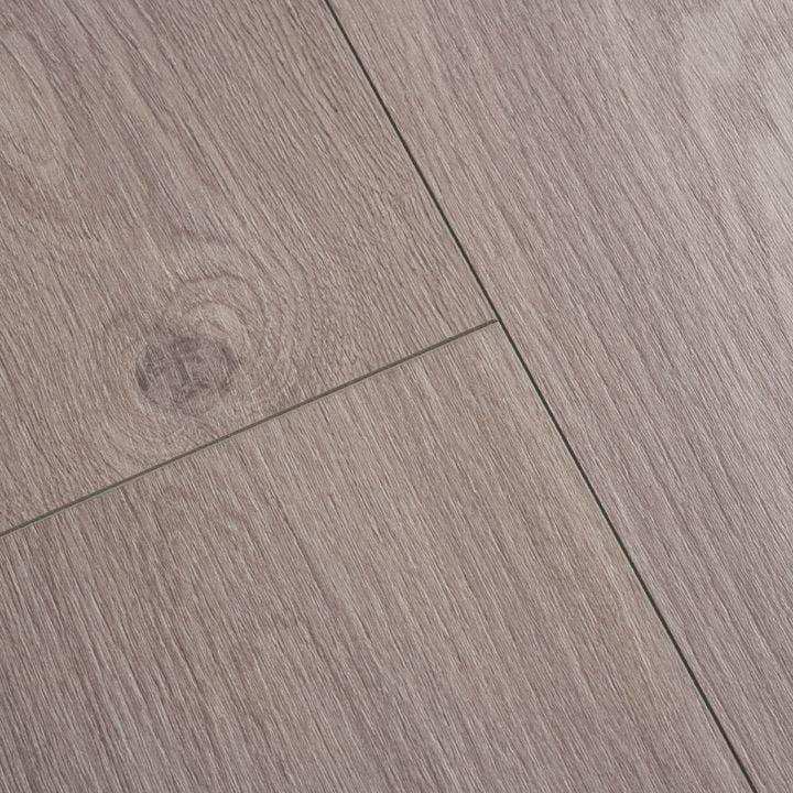 O pavimento flutuante laminado 64T Olimpo Oak destaca-se pelo veio marcado e pela tonalidade singular em bege médio com subtis nuances cinzentas, resultando num padrão cheio de personalidade e presença visual. O acabamento Vintage Matt, com textura realista e efeito extra mate, reforça a profundidade da superfície e intensifica a autenticidade do desenho da madeira.