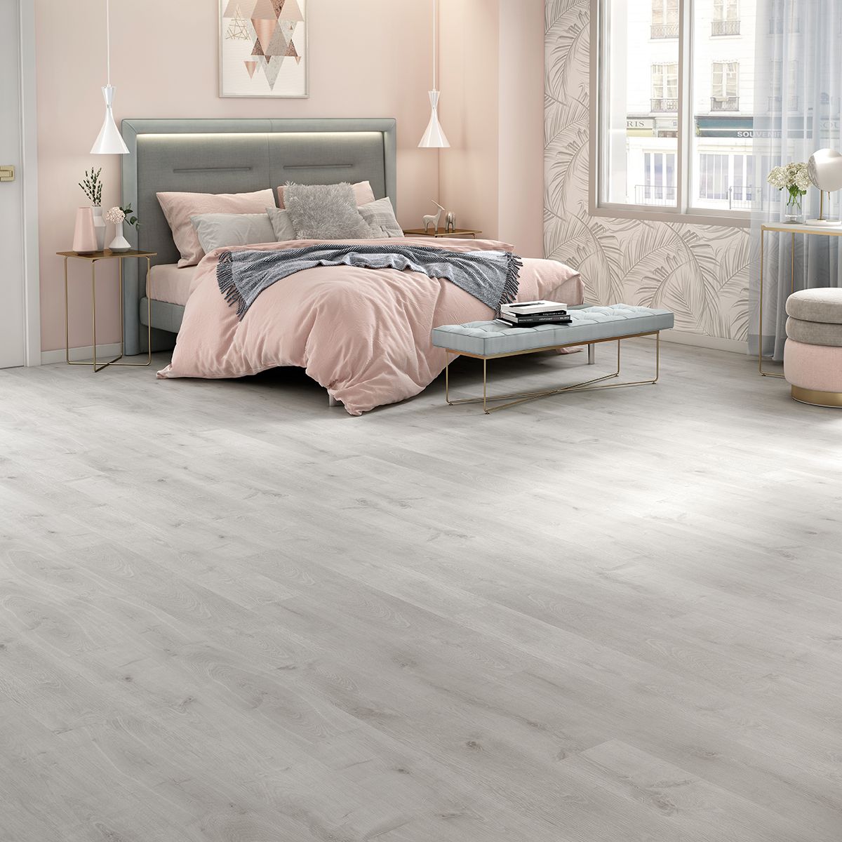 O pavimento flutuante laminado 77N Titanio Oak interpreta uma das cores de destaque no design de interiores contemporâneo, o cinzento. A tonalidade aplicada ao padrão de carvalho, enriquecido por um toque rústico subtil e por uma textura de poros abertos, confere profundidade visual e equilíbrio estético ao conjunto.