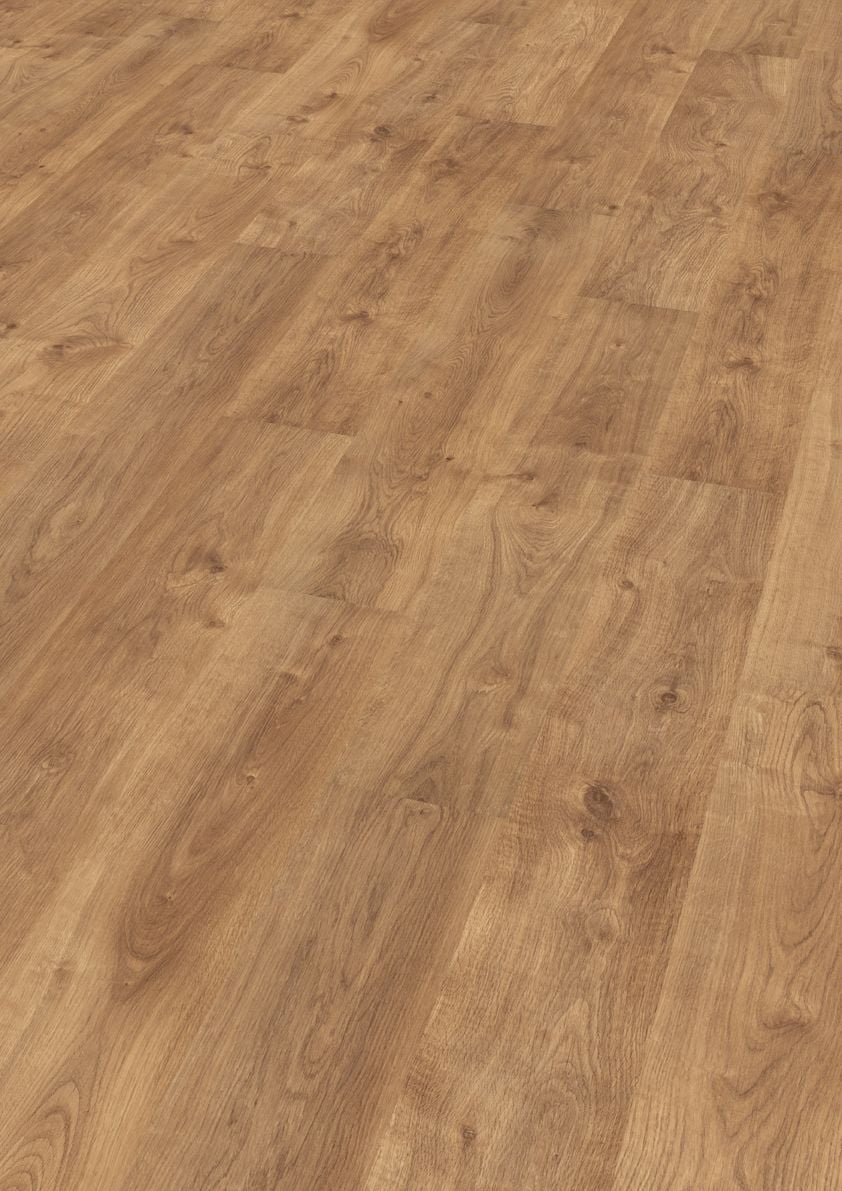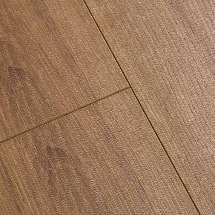 O pavimento flutuante laminado 80N Retro Oak evidencia um contraste subtil entre as réguas e uma tonalidade dourada característica do padrão de régua única, tornando-o numa opção altamente valorizada pela sua continuidade visual e expressão estética. O acabamento Dry Touch mate acrescenta uma textura agradável, aprofunda o realismo da superfície e reforça a naturalidade da madeira.