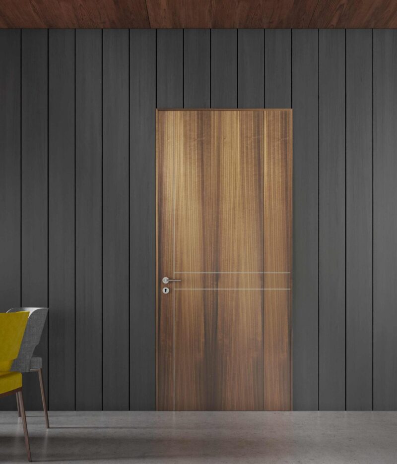A Porta de Interior Lacado Bronze – Modelo 314 é uma solução versátil e contemporânea, caracterizada pelo seu friso decorativo horizontal de 5 mm, que confere uma identidade única. Disponível em múltiplas configurações, com ou sem elementos envidraçados, adapta-se a diferentes necessidades funcionais e linguagens de projeto. O acabamento lacado bronze assegura uma superfície uniforme, de fácil manutenção que se envolve no design da arquitetura interior.